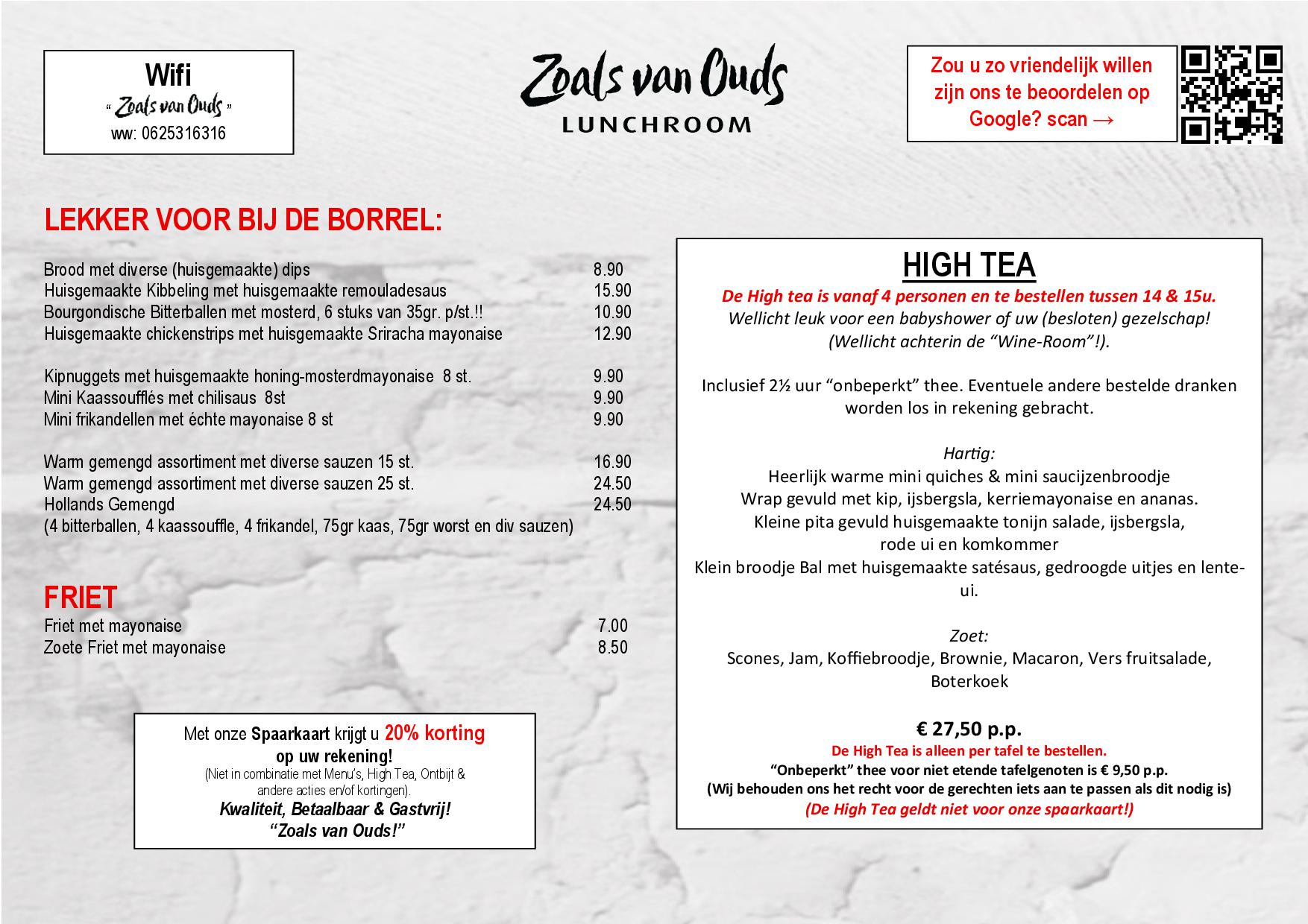 (Laatste keukenbestelling wordt op 17.30u aangenomen!)